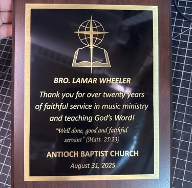 Precision laser engraving, awards, signage, promotional items, and creative solutions for businesses and individuals, providing unmatched quality and detailed craftsmanship that enhances your brand identity and elevates your personal milestones. Proudly serving the North Georgia area and beyond.